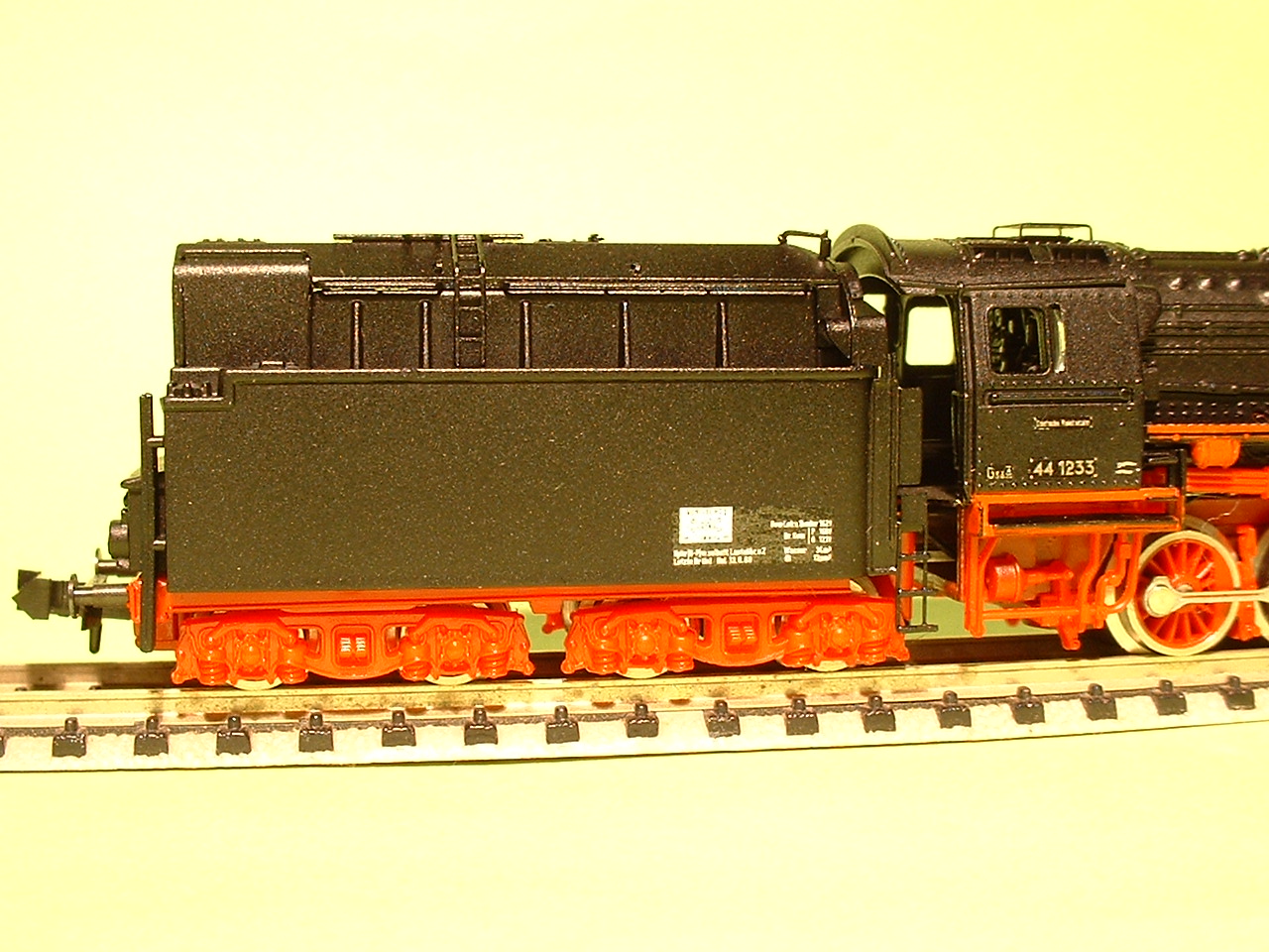 der Tenderaufsatz von Kuswa ist leider nicht mit ganz richtig für die 01.5. Gerd hat den Prototypen der 44 nachgebildet, ich meine das war die 44 195. Die Trittfläche oben auf dem Ölaufsatz ist da leicht anders. Außerdem ist der Tender von der Roco-Lok ziemlich zu kurz. Mal neben einen Trix- oder Arnoldtender stellen dann sieht man das.
