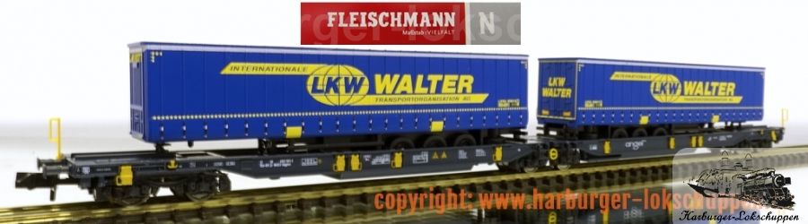 THEMA: Fleischmann 825001 Doppeltragwagen Walter LKW Auflieger Foto