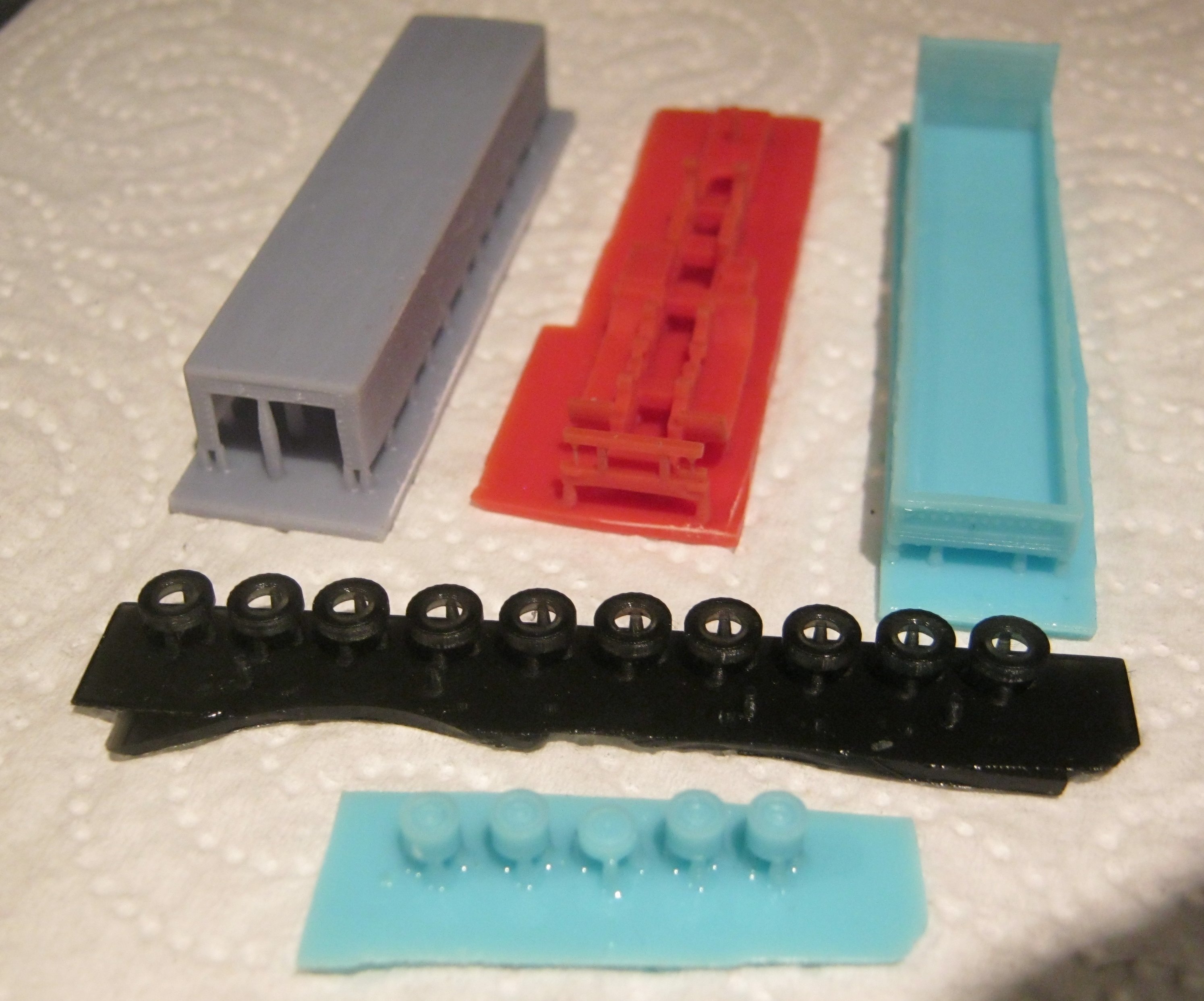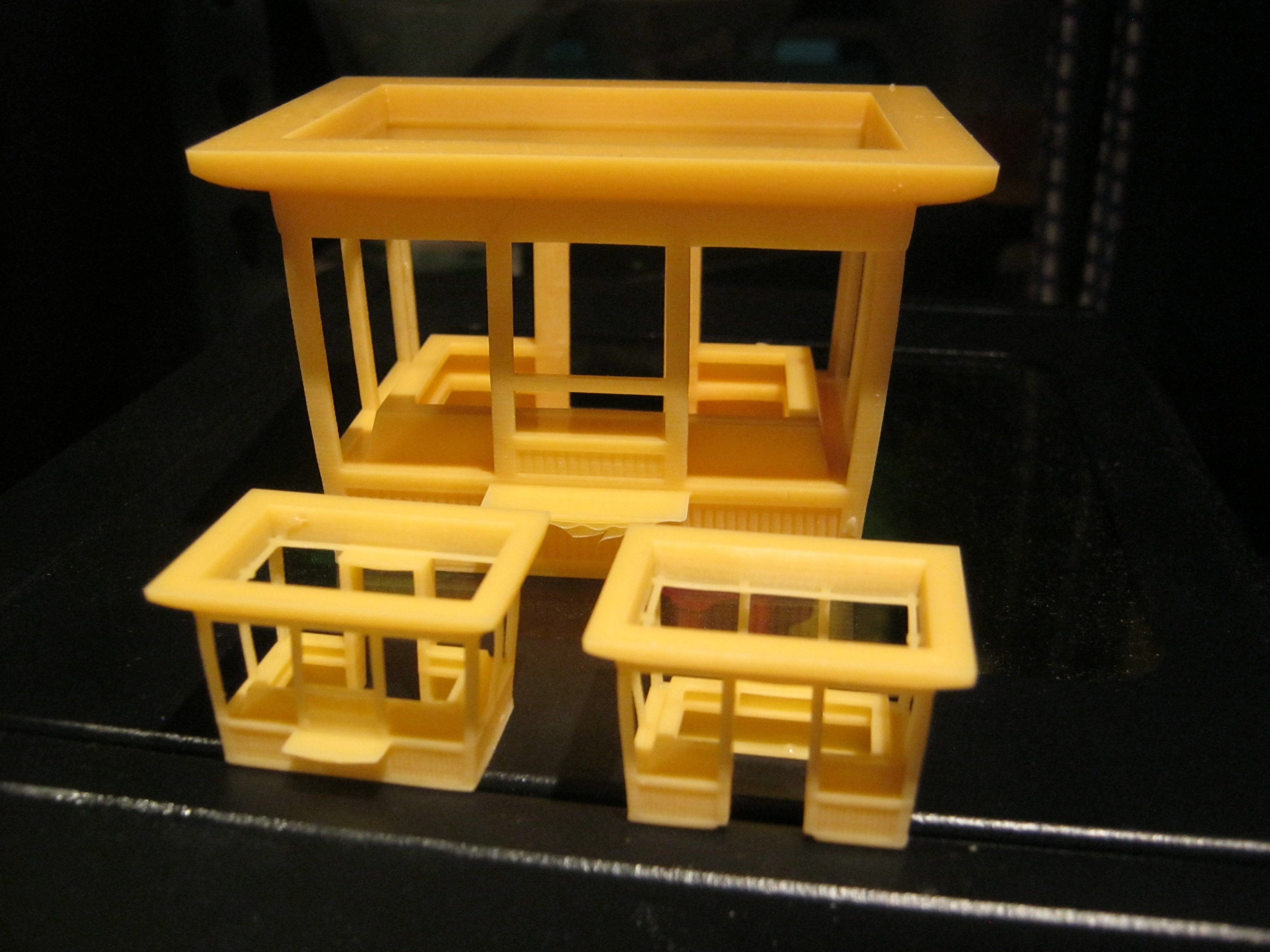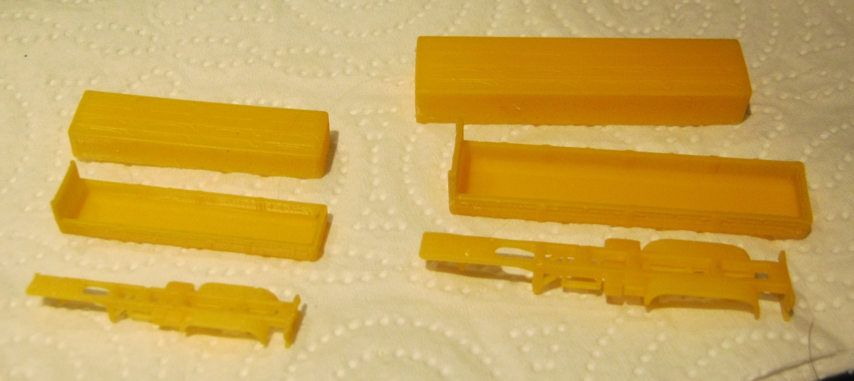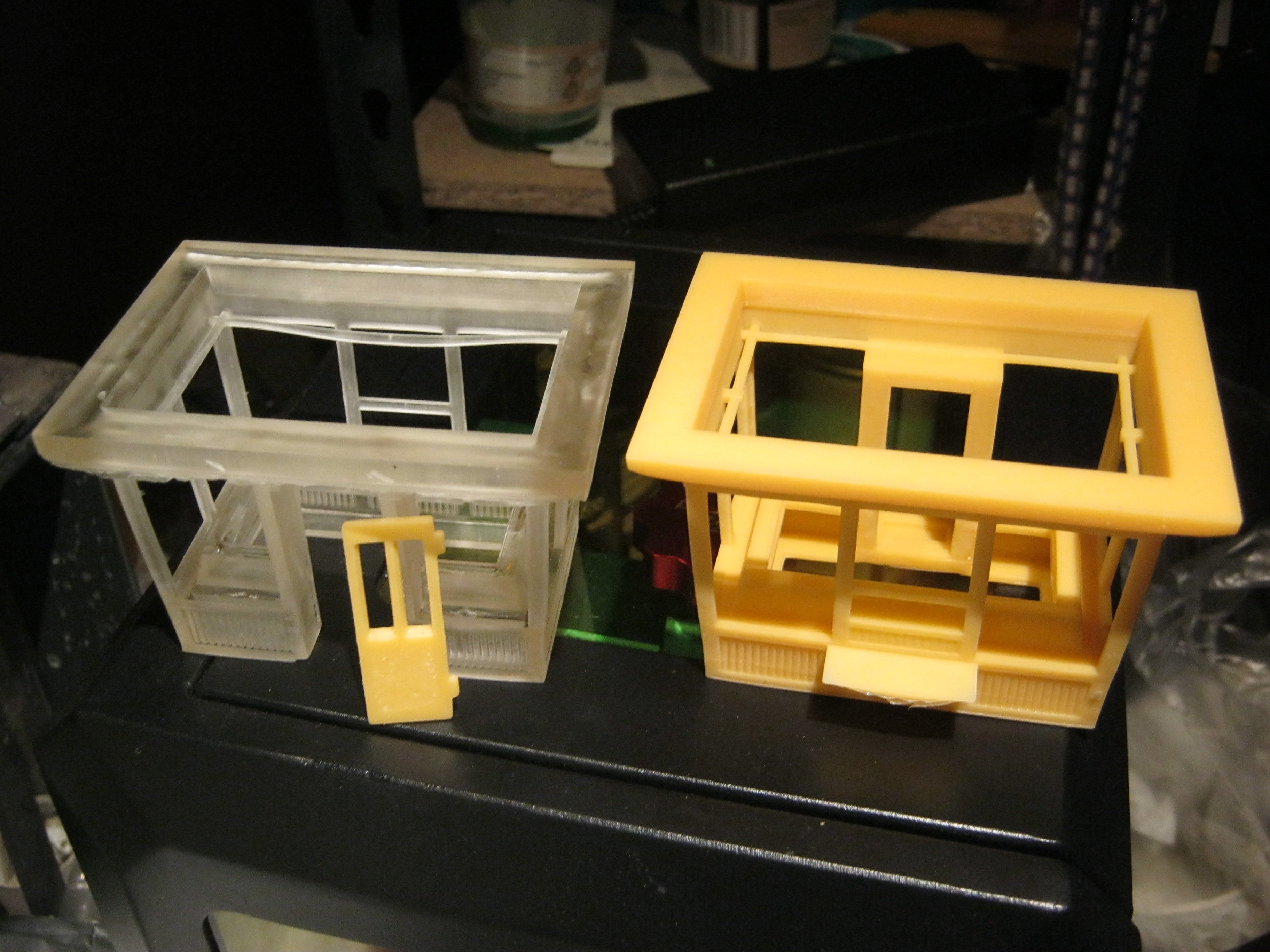 Also der Klare Harz und der mitgelieferte grümklare liefern die besten Ergebnisse, der Farbige ist wohl etwas "Zäh" und denoch weich, aber erspart etwas das Lackieren. Wenn jetzt die Karosserien fertig sind werden noch Dächer für die Kioske getestet.