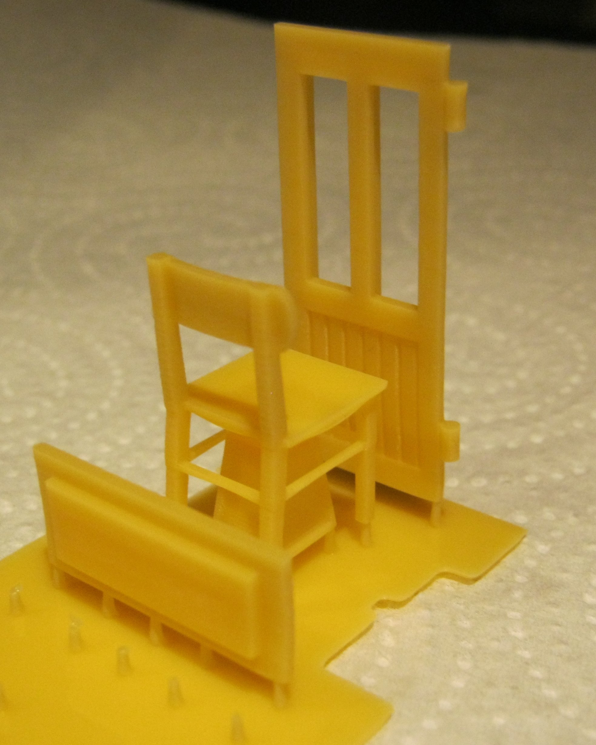 Dann können erst die stützem emtfern und das teil entnommen werden und dann erst die Kontaktfläche abgehoben werden die sich leicht bieht. Bei stehenden dünnen teilen wie der Tür ist die kontaktfläche zu klein, da braucht man die großen "Füße" der stützkonstruktion.
