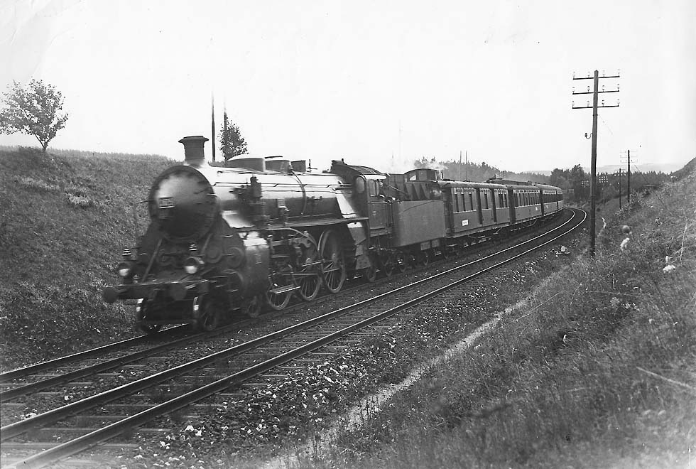 " Paris-Carlsbad-Express, a section of the Orient-Express, DR Pacific 18 442, Bavarian class S3/6, CIWL van and diner Stuttgart - Prague and the rare wooden S type sleepers from Paris, Calais and Oostende, near Schnabelwaid, Bavaria, 1927 (Ernst Koeditz) ", aus https://www.trains-worldexpresses.com/200/201.htm .