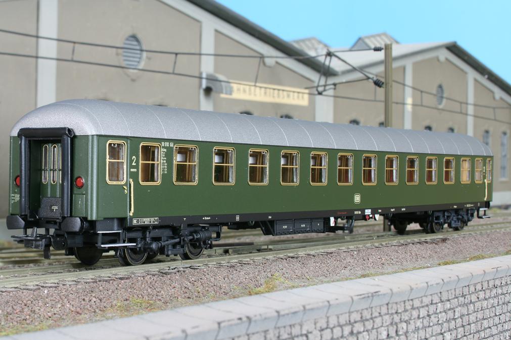 - moderner DB 2.Klasse 26,4 m - Wagen, dem Bild nach könnte es ein B4üm-54 sein, wie dieser 2.Klasse von Minitrix auf dem 3. und 4.Foto https://www.1zu160.net/scripte/forum/forum_show.php?id=940246 . Her haben wir diese Bauart als H0-Modell von Hobbytrain http://www.reisezugwagen.eu/wp-content/uploads/H_43200_B4%C3%BCm.JPG