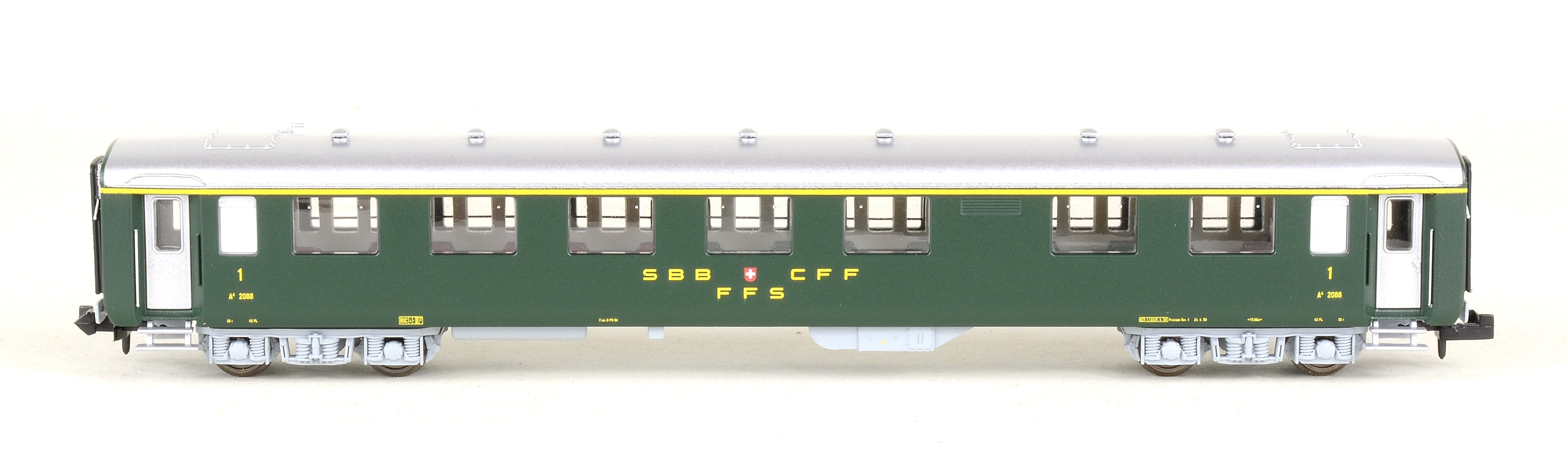 - zwei schweizerische SBB /CFF/FFS RIC Sitzplatzwagen Bauart Schlieren , im Bild neben dem folgenden DB- Wagen der 2.Klasse Schlieren-Wagen, genau den gibt es in N aktuell gerade von MW-Modell https://mw-modell.de/images/stories/virtuemart...210a--3-s--klein.jpg .