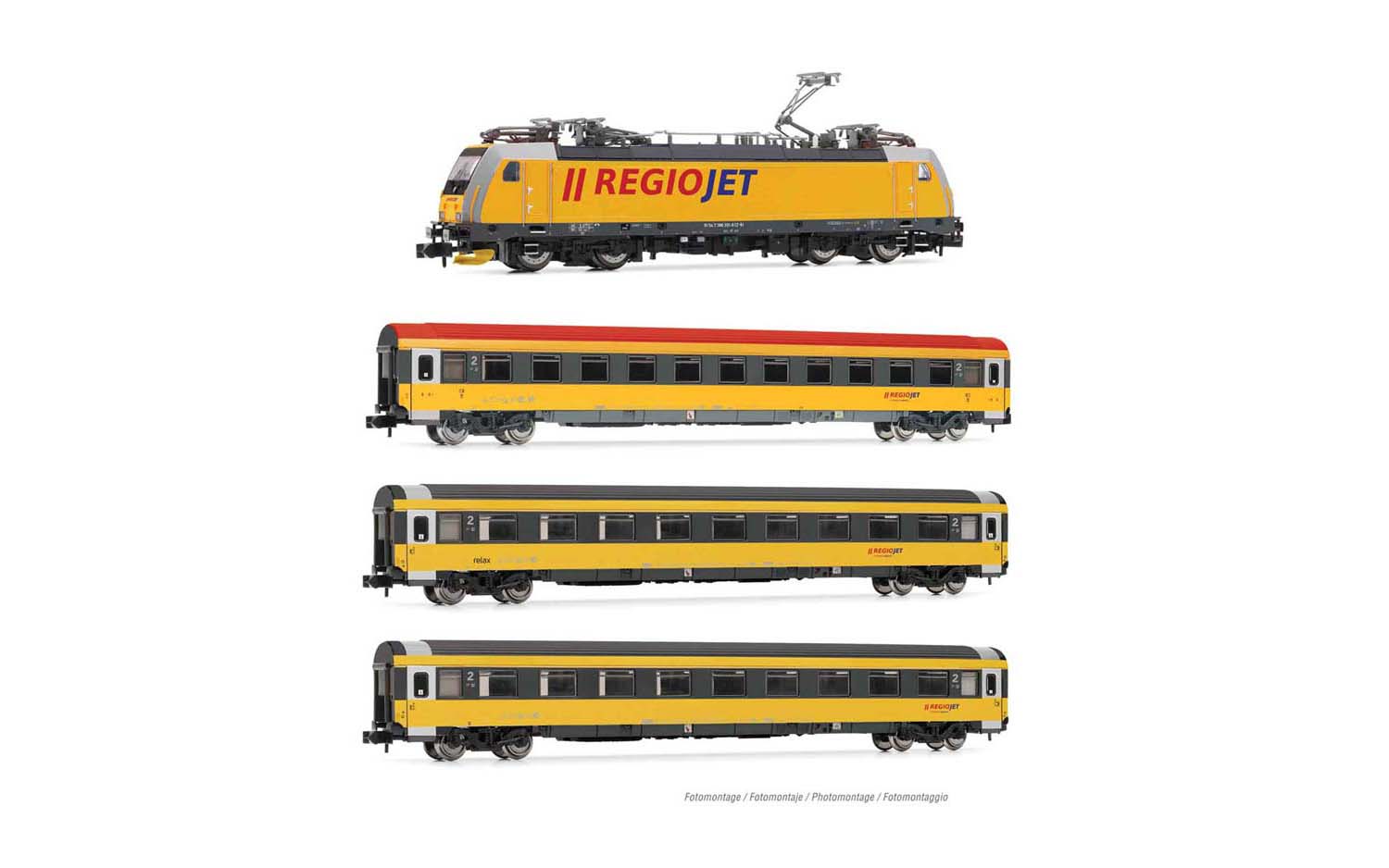 HN2499D Regiojet, class 386 locomotive with 3 coaches, period VI, with DCC decoder
