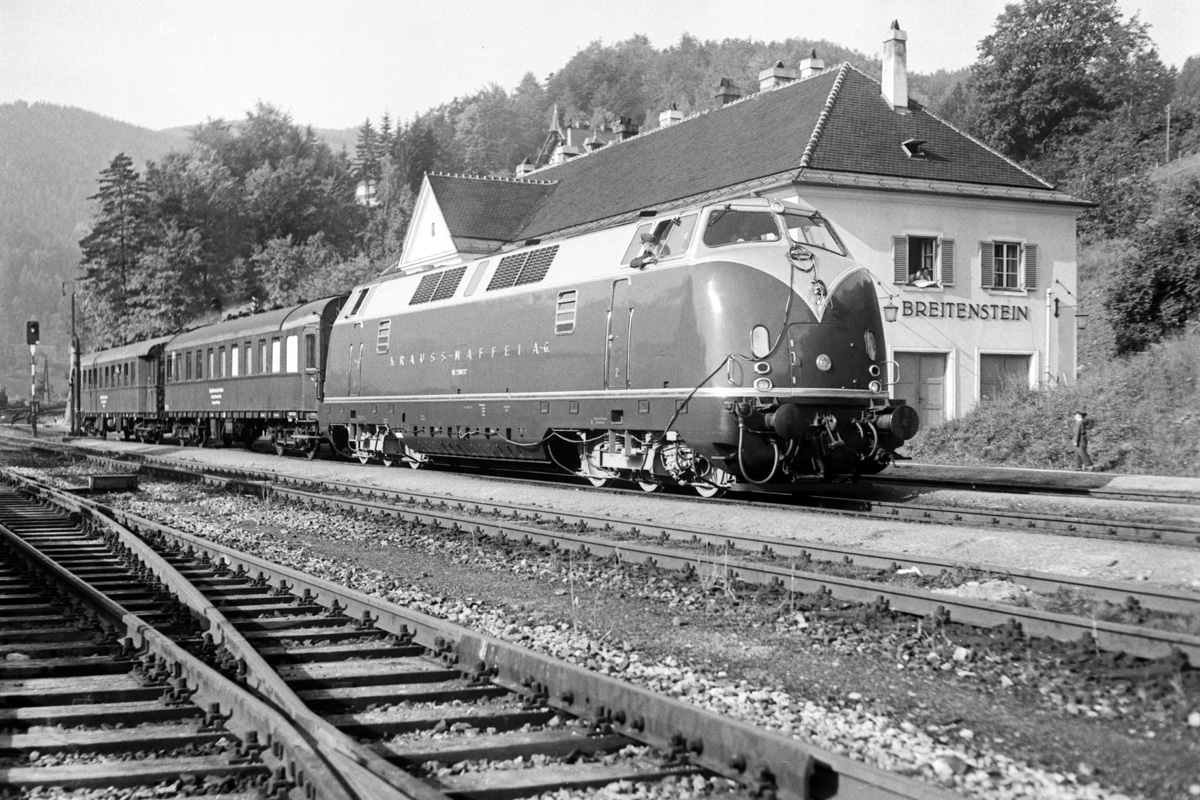 drei Loks wurden nach Jugoslawien geliefert worden. Die vierte hat Krauss-Maffei auf eigene Rechnung gebaut, blau lackiert, ihren Namen an die Seite geschrieben und dann die Lok erprobt. 1957 fande diese Probefahrten auf der Semmeringbahn in Österreich mit regulären Personen- und Güterzügen statt.