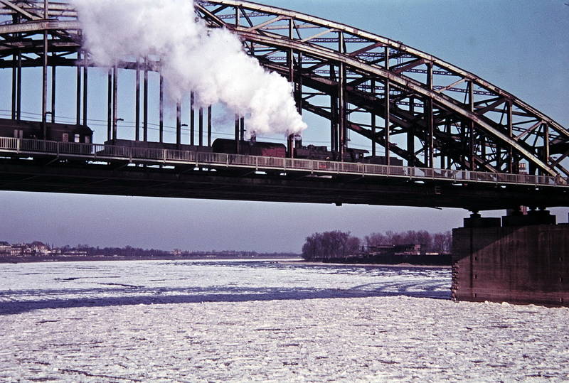 Auf der Kölner Hohenzollernbrücke wirken die Züge auch klein gedrungen, bis zur Bogenspitze könnte man die Züge wohl vier- bis fünffach stapeln und die Hauptstreben stehen auch hier sehr weit auseinander.