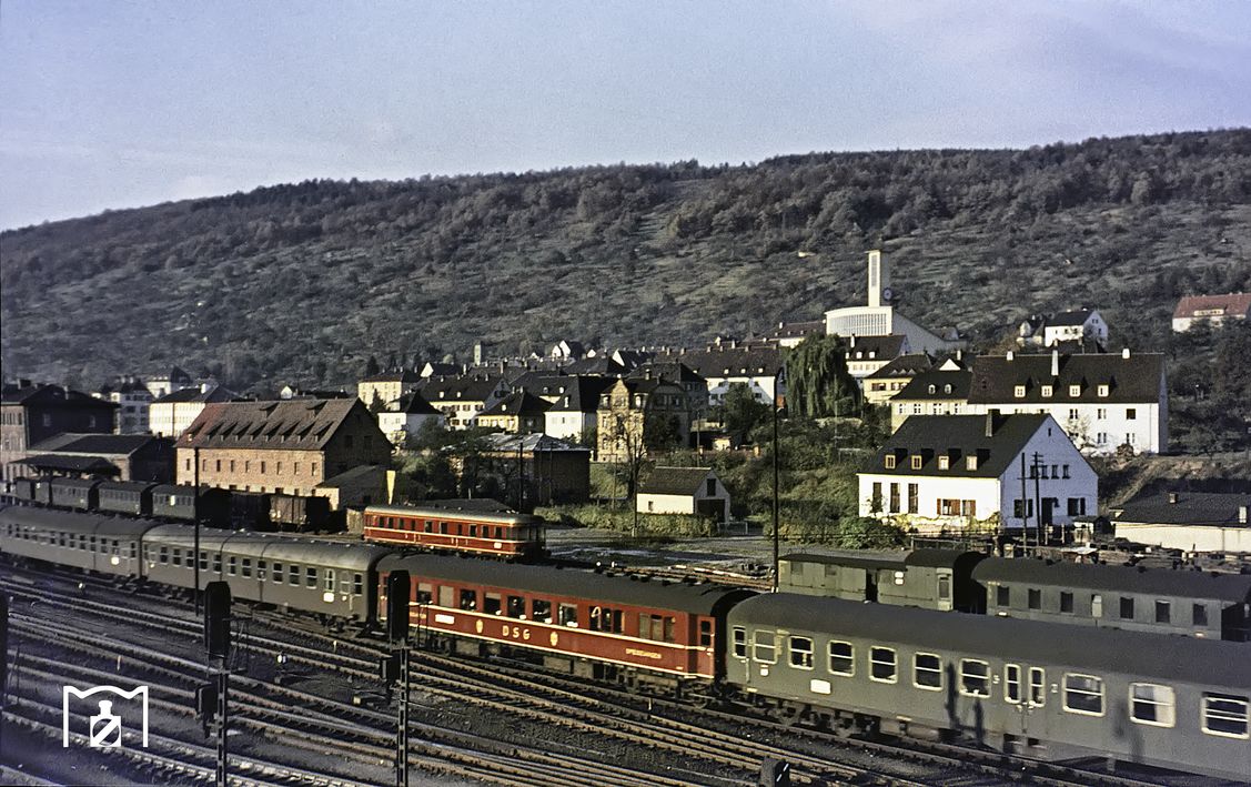 Die Altbauwagen im Hintergrund (und der Speisewagen) haben alle noch umbragraue Dächer. Von den neuen Wagen gerade mal einer von dreien.