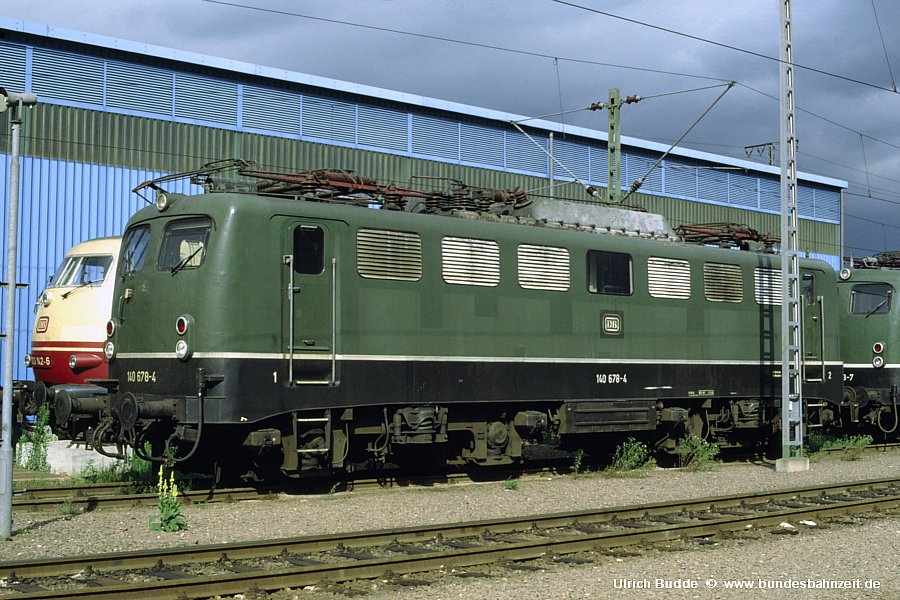ok, für mich ist das auch ein bisschen wenig schön für teuer, aber m.E. ist es die erste Einheitslok mit Lüfterblenden mit waagerechten Lamellen (Bauart Schweiger) und Doppellampen. Irgendwer kann bestimmt sagen, wie 140 678-4 an diese seltene Kombination kam ... ?!?