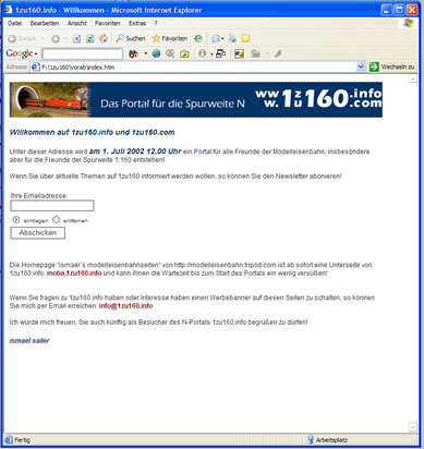 Übrigens: Mir ist gerade aufgefallen, dass in der Seite HP-Updates ein Fehler war: Der Start der normalen Seite war am 1. Juli 2002, die erste Preview-Seite ging am 31. 5. 2002 online - allerdings nur mit dem Hinweis, dass der Start der Seite am 1. 7. 2002 um 12.00 sein wird.