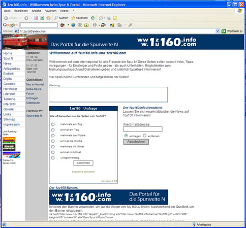 So in etwas sah die Startseite im Jahr 2002 aus (Die Umfrage habe ich einmontiert):