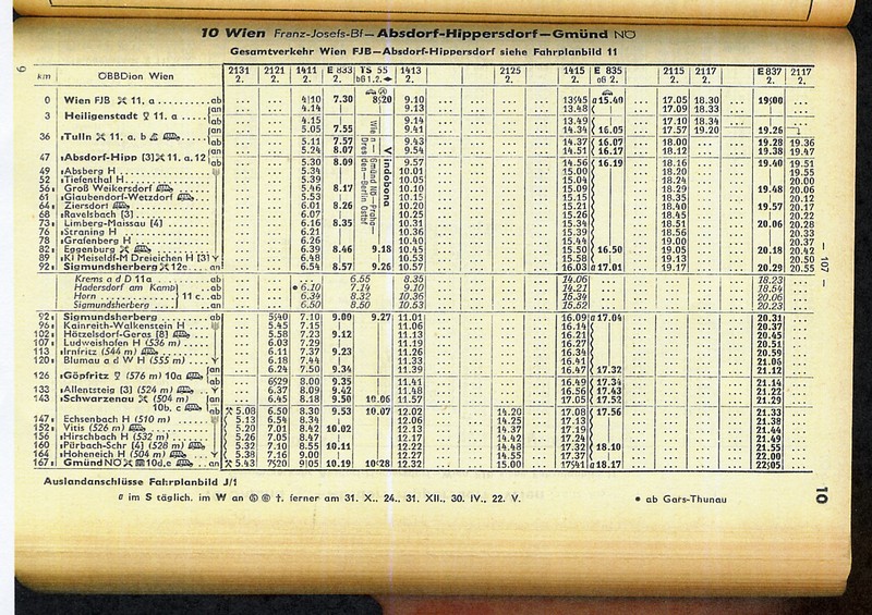 Unter dem Link http://www.club-blauer-blitz.com/gallery/10.jpg kann man einen Blick auf das Kursbuch von 1963 der ÖBB werfen. Zumindest, sind hier die Haltestationen im Bereich der ÖBB gesichert nachgewiesen.