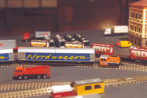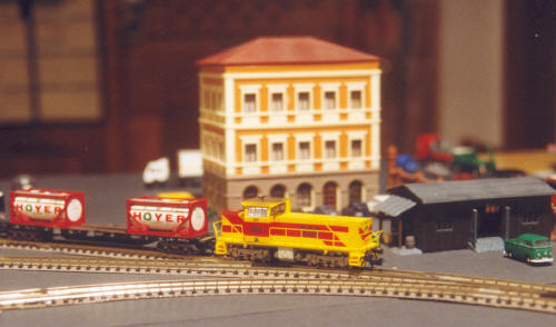 Da der Hersteller die "Seehafen"-MaK-Lok nicht termingerecht zum ersten Probetag liefern konnte, half eine Lok von EH aus ("Eisenbahn un Häfen" passt ja wenigstens vom Namen her...)