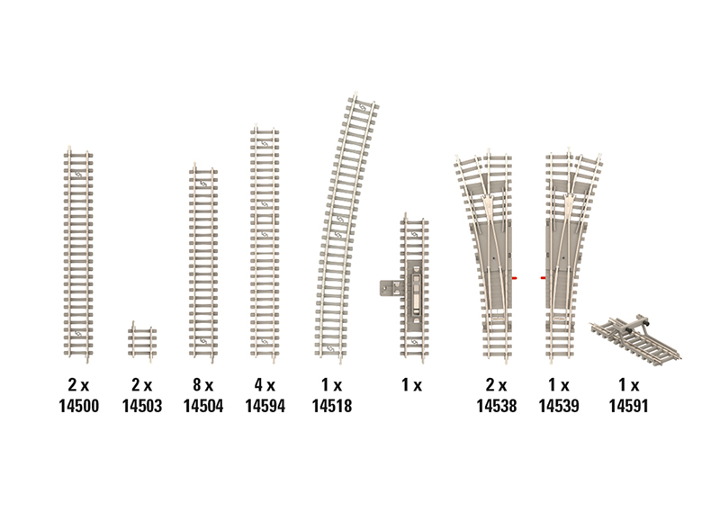 Zusätzlich benötigt man 2 plus 4 längere gerade Gleise.