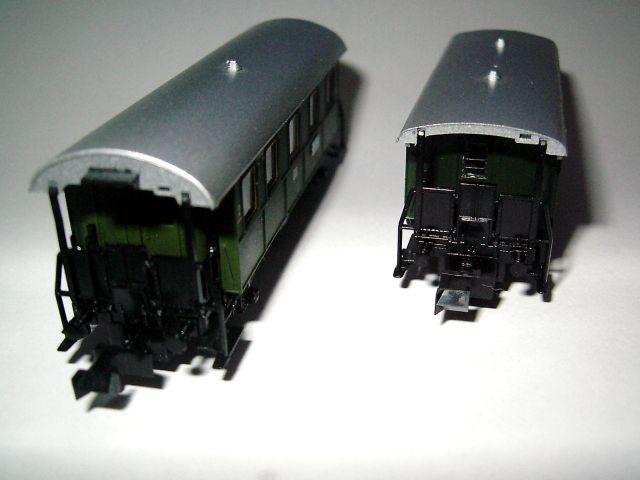ich konnte recht günstig die Minitrix-Modelle 13337 (Personenwagen 1./2. Klasse AbiBay10) und 13339 (Pack- Postwagen LpwPostBay14) gebraucht erwerben. Weiß zufällig jemand, ob diese Wagen an den Stirnwänden Aufstiegsleitern haben? Bei meinen sind keine vorhanden, allerdings sind entsprechende Aufnahmeschlitze vorhanden.