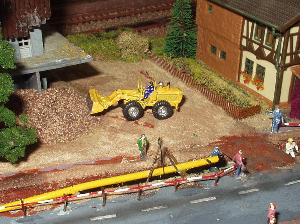 Der Radlader hat zwar eine größere Abweichung, es gibt in Realität aber in der Bauart identische Radlader mit bis zu 3 m Breite. Zudem wurden alle Modelle mit einem Wiking LKW abgebildet. Meiner Meinung nach passt es und sieht prima aus.