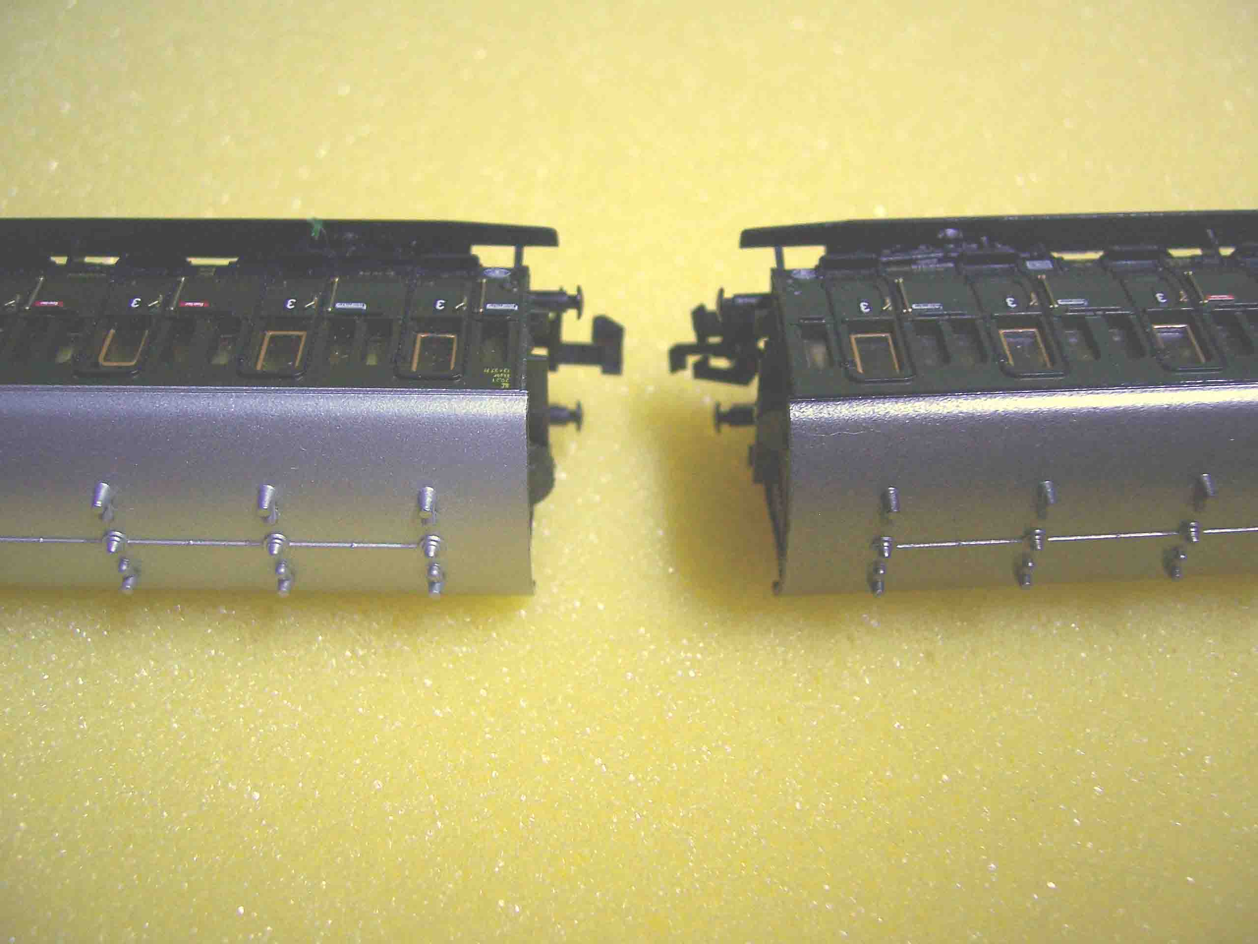 Du siehst es an den Kesselwagen von AnTic: alle unterscheiden sich. Würden sich alle Dächer meiner Abteilwagen unterscheiden, fände ich das auch gut. So aber sehen alle identische aus und mittendrin glänzt einer mit einem silbernen Dach. Alle anderen haben ein dunkles silber. Meine Fleischmann-Donnerbüchsen, die Plattformwagen aus dem MTX Startset und einige Abteilwagen haben alle die gleiche dunkle Dachfarbe. Sieht sehr schön aus, man muß beim Zusammenstellen ein bisschen auf Pufferhöhe und Wagenbodenstärke achten (wegen der dicken GFN-Donnerbüchsen), sogar die Ex-Bay. Schnellzugwagen passen rein, alle gleiche Seitenwände, gleiches Dach.