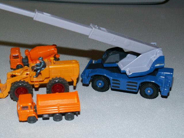 ist mal ein Detailbild. Der Kran hat einen drehbaren Ausleger, dreifach ausziehbar, der Haken ist beweglich; die Räder sind einzeln beweglich. Chassis aus Metall, eigentlich nen schönes Teil. Nur halt etwas überdimensioniert.