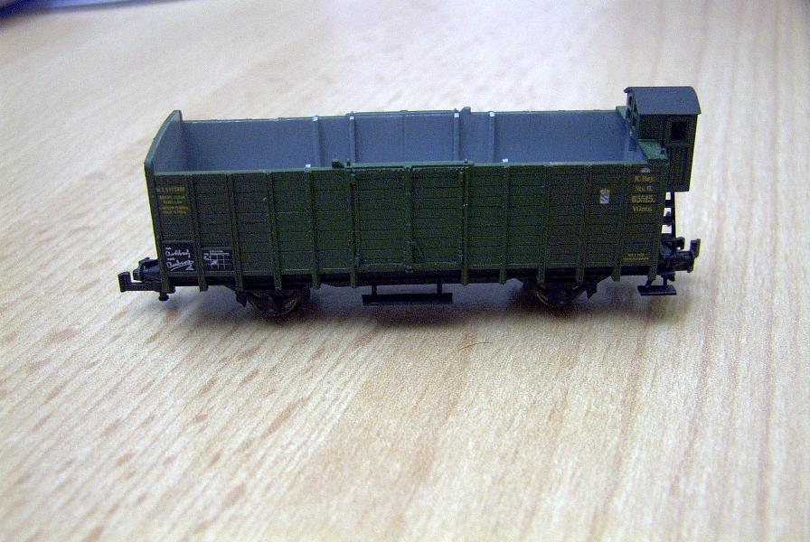 Der Wagen ist etwas zu kurz, aber durch Verwendung 2er Wagen mit Bremserhaus stimmt der symetrische Überhang auf beiden Seiten.