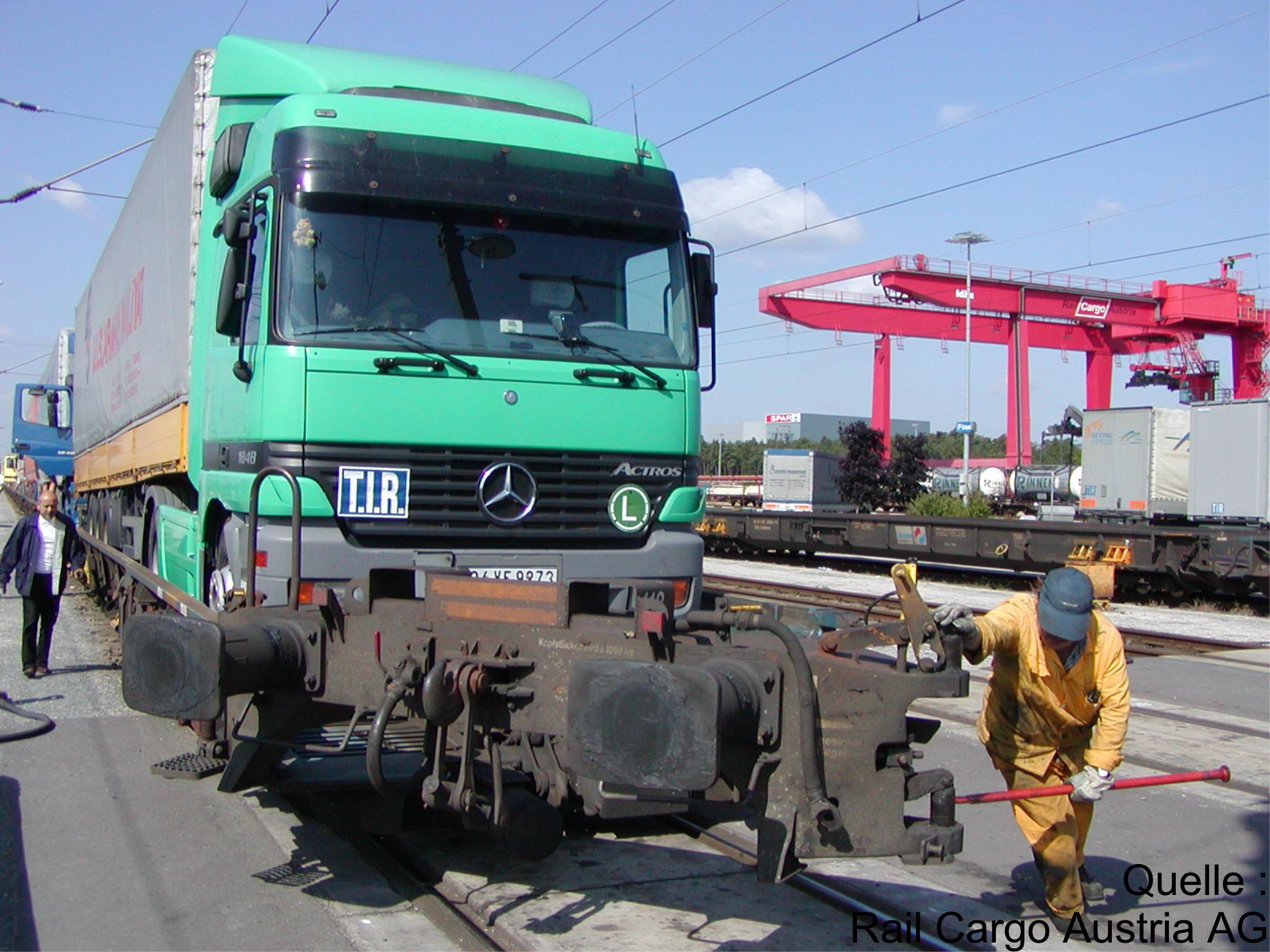 Die von Fleischmann angeschrochenen Wagen gehören zur rollenden Landstrasse. Dies ist ein Produkt, wo die Zugmaschinen und meist auch der Fahrer mit dem Zug mitfahren. Wird momentan zwischen Freiburg und Italien angeboten. Dort fährt übrigens die BLS. Ob's noch andere in Europa gibt, weiss ich nicht.