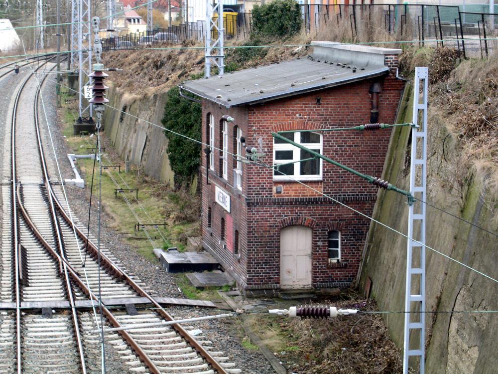 wenn du auf deiner Anlage auch noch ein Stellwerk brauchst und keinen Platz hast, klebe es einfach an die Stützmauer so wie hier in meiner Nähe:
