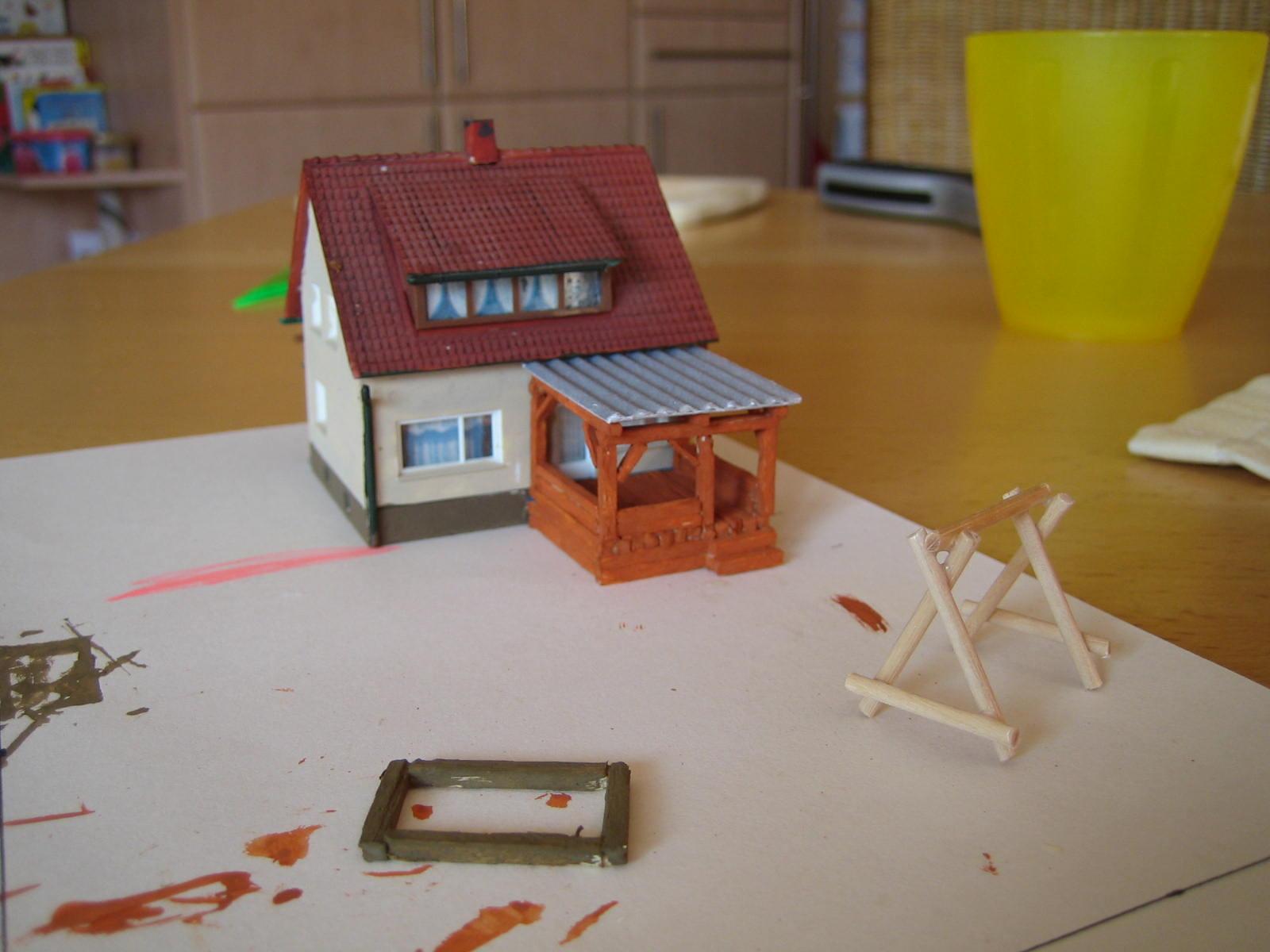 ich habe diese Woche zwei Häuser zusammen geklebt die zu einer kleinen Häuserzeile von Vollmer gehören (Bahnhofsstraße) und einige Waggons gereinigt (Räder) sowie meine BR03 repariert (Kabel hatten Quetschstellen, dadurch Dauerfunktion des Lichts).