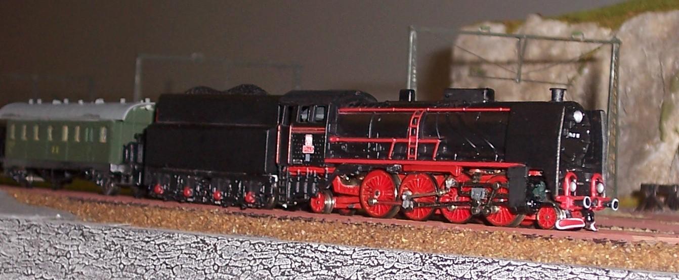 für die Lok habe ich ein vorn gekürztes Fahrgestell der Arnold BR 41 genommen. Getriebe und Motor ebenfalls von der BR 41. Räder von der Minitrix BR 17.