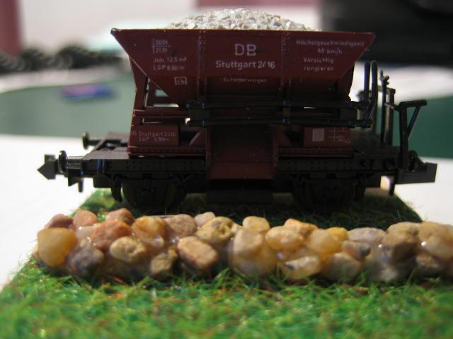 Der kam persönlich aus Lingen, werd mir bei dem auf der Intermodellbau auf jedenfall eine Rolle mit 20m holen, da braucht man nur das Gleis und den Schotter in den Katschuk eindrücken-->fertig. und wider Erwarten hat's gehalten!! und ist restlos entfernbar mit dem Fön, durfte ich selbst ausprobieren. Die 26 ökken für 20m ist es mir auf alle fälle Wert.....