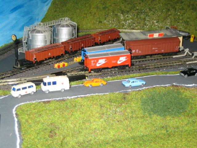 Hallo, lieber Markus, auch ich finde deine Anlage ganz toll. Nur eins stört mich, dein Industriegebiet beherbergt eine Tankstelle, soll wohl ein Öllager oder so was darstellen? Dann dürften dort eigentlich fast nur Kesselwagen im Einsatz sein? Na gut, die Bahnübergänge hast du ja versprochen, noch zu machen. Viel Spaß, kritische Augen werdens verfolgen, versprochen... Ein Stellwerk muss aber nicht sein, eine Rangiererbude höchstens. Bei drei Weichen ist ein Stellwerk nicht gerechtfertigt, die Weichen werden hier vor Ort bedient. LG, Andi