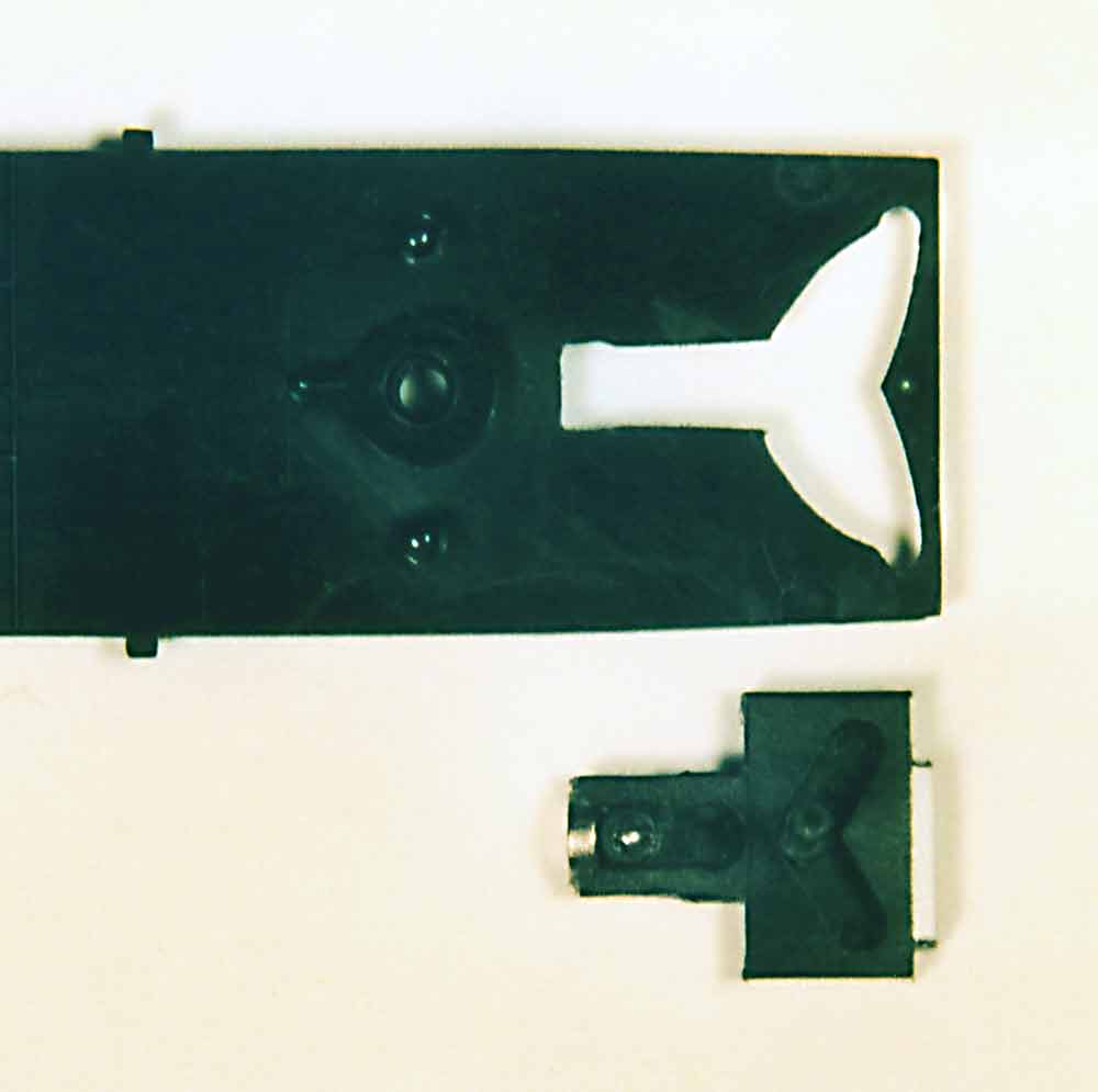 Sehr filigran und stark bruchgefährdet selbst beim leichten Nachbiegen wurde bei der Konstruktion dieser Teile unnötig Potential verschenkt und damit sicher so mancher Bastler verärgert. Kaum definierte Klebestellen für stumpfes Kleben mit entsprechendem Irrtumspotential hätte man durch Lösungen mit angespritzten Stiften und Sacklöchern in den Seitenwangen ohne jeglichen zusätzlichen Konstruktionsaufwand sicher vermeiden können. Auch gleichzeitig Platz für den Einbau einer Fremd-KKK vorzusehen hätte konstruktiv keinerlei Mehraufwand bedeutet. Der separate Einbau von Bremsbacken mit 0,4 mm Stiften mag etwas für die Vitrine sein, für das Bewgen der Fahrzeuge auf einer Modellanlage scheint mir dies mittelfristig (auch mangels überzähliger Teile im Bausatz) keine Lösung zu sein.