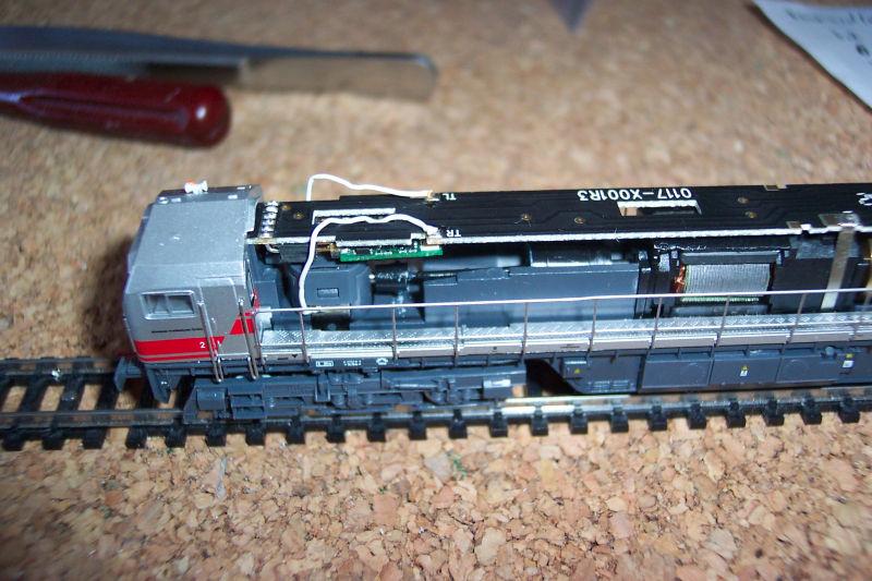 Mit ein wenig Fingerspitzengefühlt läßt sich ein Decoder auch ohne Demontage der Platine einschieben. Allerdings muß er verkehrt herum eingesetzt werden, also mit der Bestückungsseite nach unten.