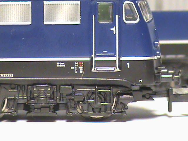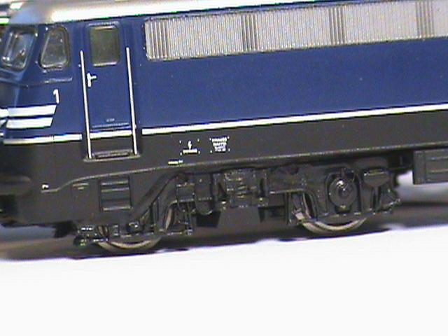 Die Drehgestelle wirken vollständig, es fehlen nur die Gleisräumer (aber bei diesem Modell stört dies nicht sehr).