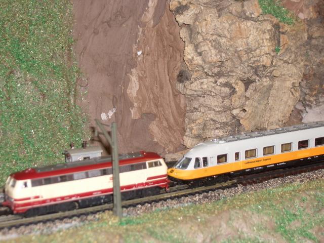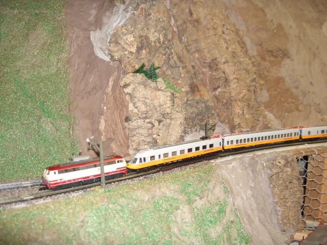 Zu sehen ist hier der einzige Anlagenteil der fertig(hihi) ist; und die Lok lag oben auf dem 21..-Stapel