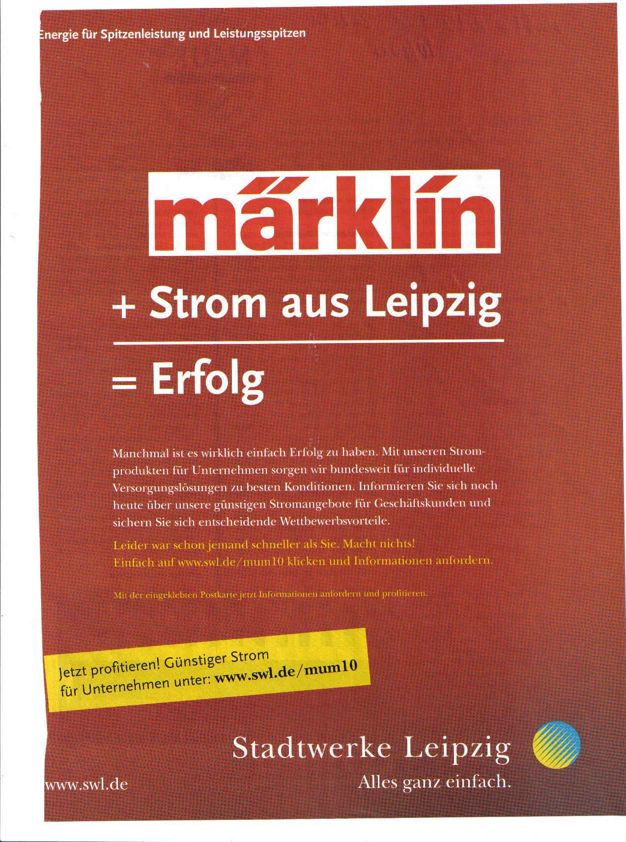 THEMA: Anzeigen: Märklin + Strom = Erfolg
