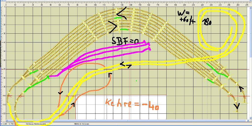 Die Wendel selbst, wird mit einer Grundhöhe von ca. 60 mm über dem SBF links herum ansteigen.