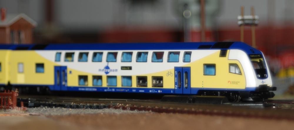 Hallo Alle zusammen, habe gerade meinen KOMPLETTEN Metronomzug geholt und gleich getestet. Der Zug sieht Klasse aus, einizges Manko bei den Wagen ist, das sie nicht beleuchtet sind. Habe bisher aber auch keinen Hinweis auf eine nachträgliche Beleuchtung seitens Trix gefunden. Da heisst es wohl basteln und selbst was erfinden.