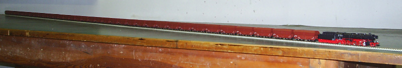 Es ging mir aber nur um den Eindruck der Länge, mit moderneren Wagen wären das auf der Moba ja schon rund 3 Meter. Will heißen, dass die 200 oder gar 250 Achsen für die meisten von uns dann wohl nicht mehr diskutabel sein dürften (auch wenn es nur eine 044 zieht...)