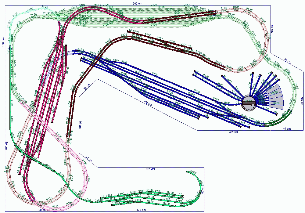 mein erster Eintrag war im August auf der Suche nach Gleisplanhilfe. Durch die Tipps dort habe ich meine Planung mittlerweile (fast) abgeschlossen, der Plan sieht wie folgt aus: