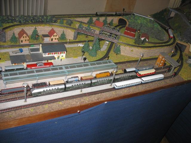 Als erstes einige Bilder von der Modelleisenbahnausstellung, die wir besucht haben. Es waren Anlagen der verschiedenen Spurweiten zu sehen, von einer großen Gartenbahn bis zu unserer N. Die größte Anlage war eine HO-Anlage, mit dem nachgebildeten Bahnhof von Hohenstein-Ernstthal mit dem Original-Gleisplan.