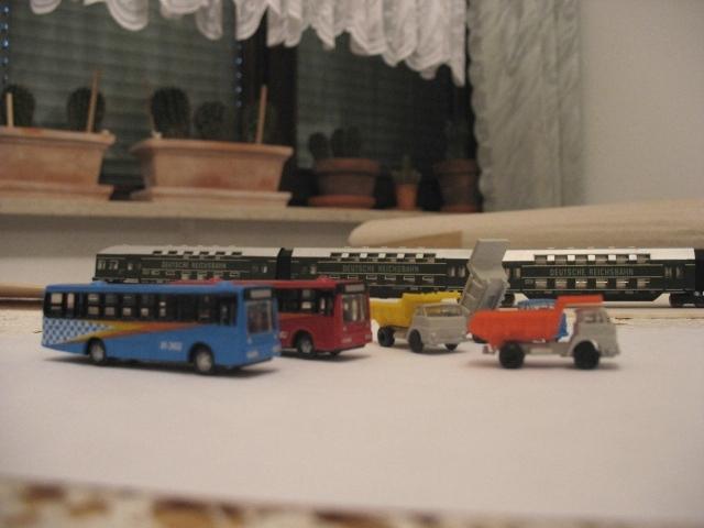 Die Kipper gab es für 10,50 - aber nicht einer, sonder alle drei. Habe ich auch bisher noch nirgendwo als neu gesehen. Die Busse, das Stück 2 Euronen, ist doch auch ganz akzeptabel. Das sind allerdings Busse von Reisegruppen aus UK, die haben nämlich das Lenkrad rechts und den Einstieg links.
