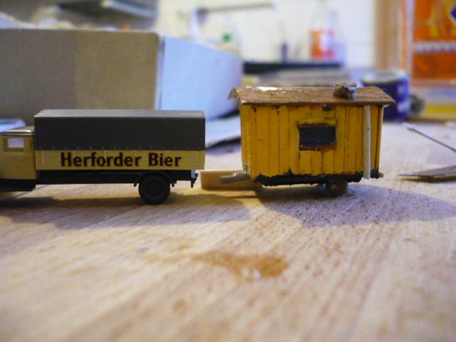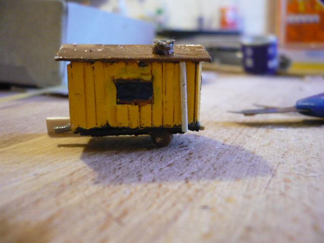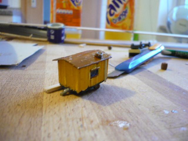 sowollte euch meinen kleine 2 stunden bastellei mal zeigen. ein kleiner alter bauwagen. er muss noch gealtert werden. die räder sind 2 fesser zerschnitten und die achse und die dachrinne sind aus ner spagetti...