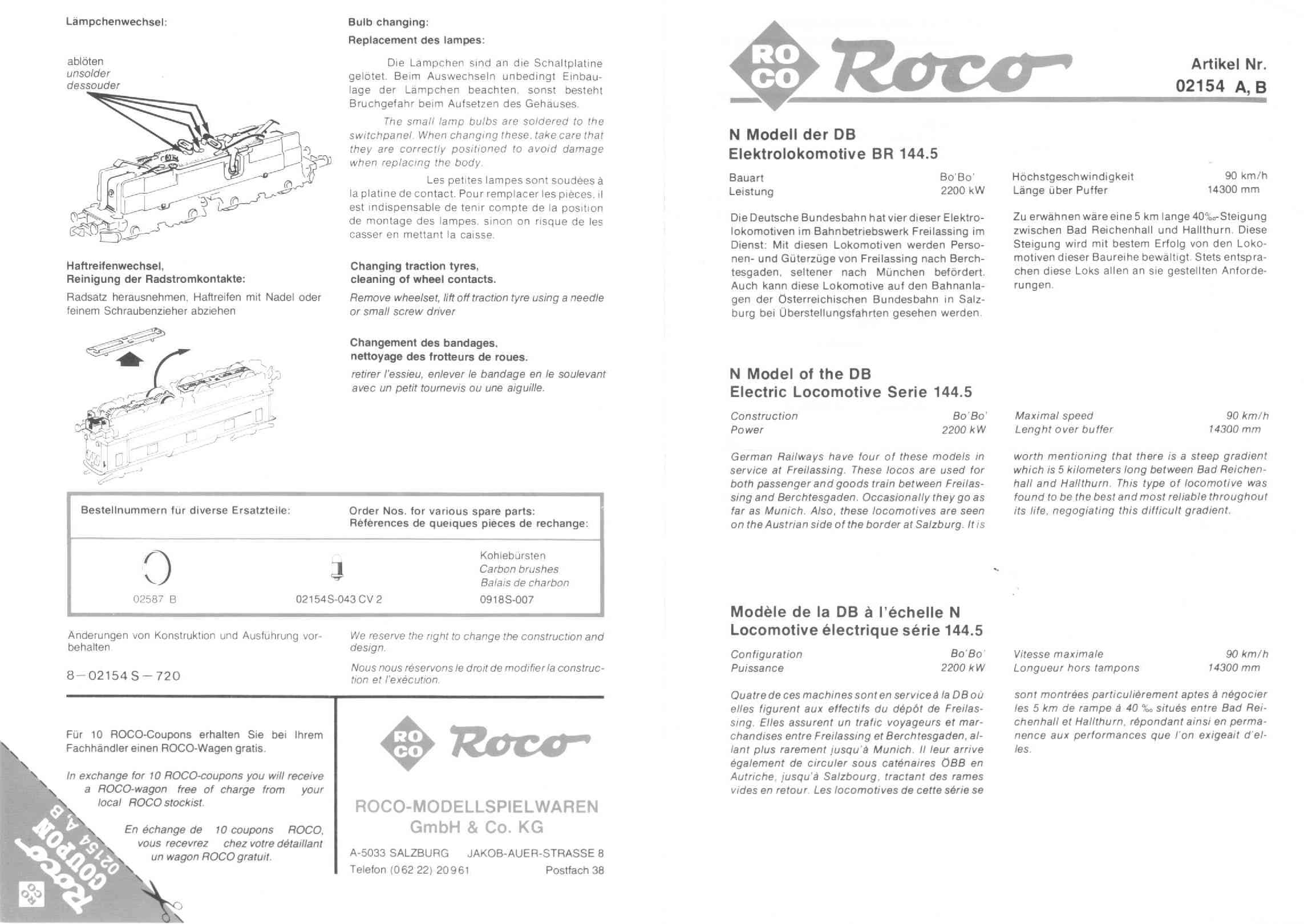 die E 44.5 war von Roco unter der Artikel-Nr. 2154B von 1982-1984 im Programm.