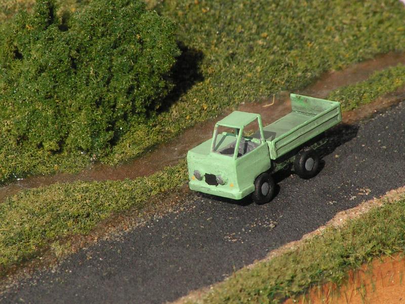 Bitte Warten!, ist wie gesagt erst der 1. Test gewesen, und da ist noch so einiges dran zu überarbeiten (Es fehlen ja noch die Seitenwände der Pritsche, Spiegel, Scheibenwischer, Ersatzrad und Batterie sowie noch so ein paar kleinigkeiten)! Aber wenn alles klappt, könnte man mal zu Ostern drüber sprechen! Bin aber noch am überlegen, wie man die Tür zum öffnen macht, und wie man das 3-Seitenkippen realisiert.