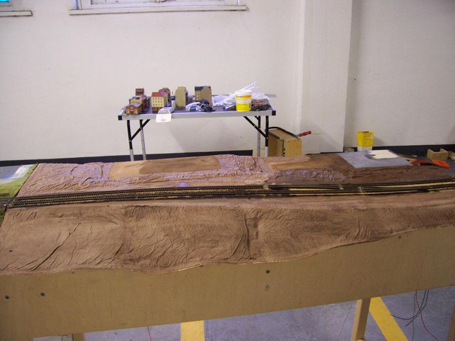 ich nehme kein Gips mehr sondern Styrodur. Es ist etwas ähnliches wie Styropor. Nur das unter anderem keine Kügelchen umherfliegen. Es weiteren ist Styrodur sehr leicht und man kann wunderbar Felsen und sich seine Landschaft schnitzen.