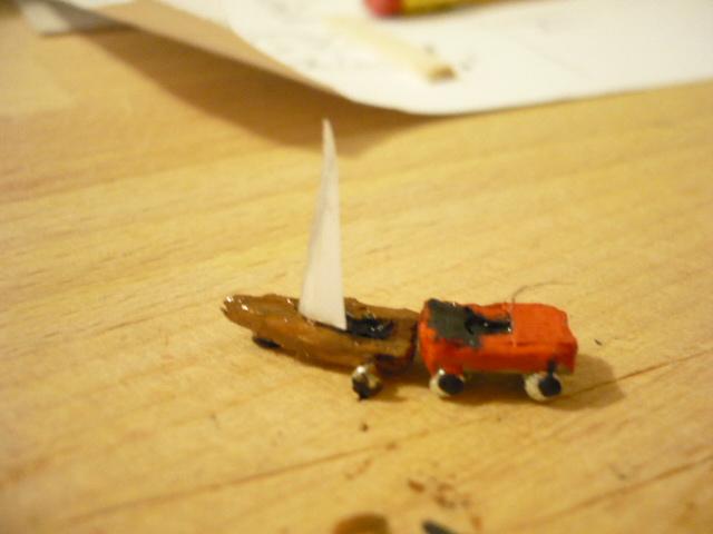 das kleine schiff aus balsa geschnitzt.