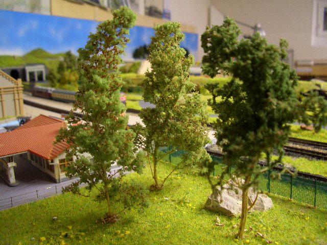 schöne Bäume baut man aus Naturmaterial. Ich verwende Seemoos oder Meerschaum oder Grannengänsefuß (alle drei Bezeichnungen stehen für das gleiche Material), das Material kann man z.B. bei "Archtekturbedarf" bekommen. Email-Adresse lautet, glaub ich, www.architekturbedarf.de