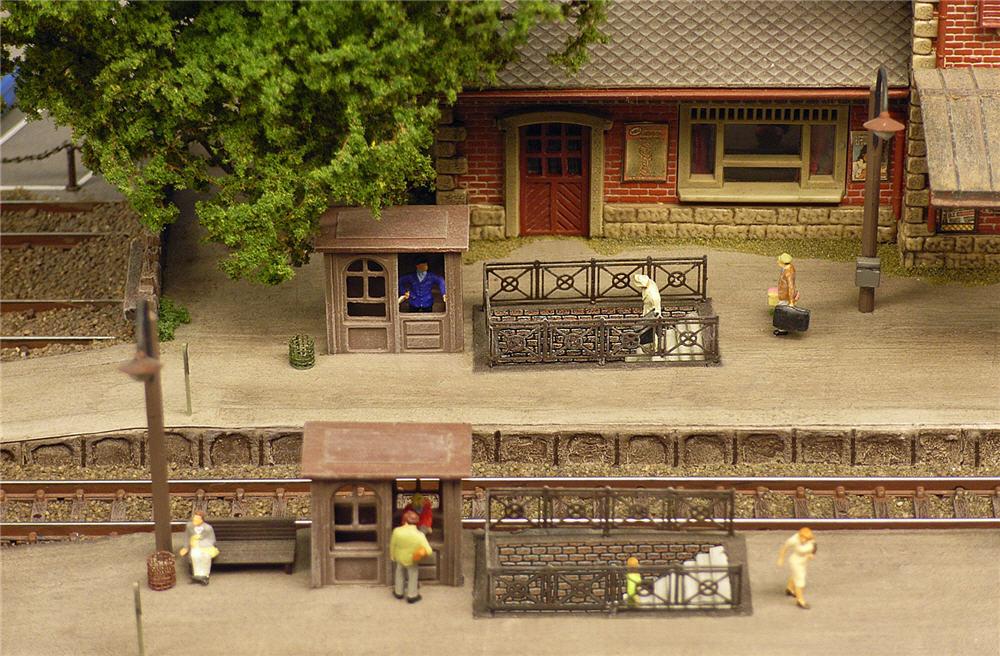 Die treppenöffnung auf dem Bahnsteig dann mit schönen, geätzten Geländern abgrenzen.