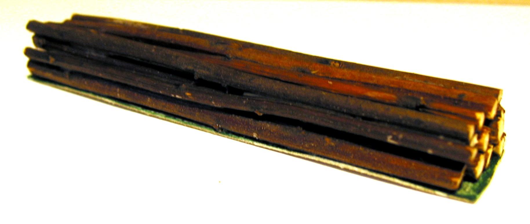 Zahlreiche Güterwagen aus der FLEISCHMANN-Aktion "1000 und 1 Tonne" sind mit Holz als Ladegut bestückt. Ich habe mir deswegen mal einen Eaos-Güterwagen mit Holzstämmen (Rundholz) näher angeschaut. Die Rundhölzer haben einen Durchmesser von 2 mm, also Zahnstocher-Stärke. Wie aber kommt die Rinde (Imitation?) zustande? Mit welcher Farbe oder Mitteln? Wer hat schon selber gleiche oder ähnliche Ladegüter gebastelt resp. entsprechend behandelt?