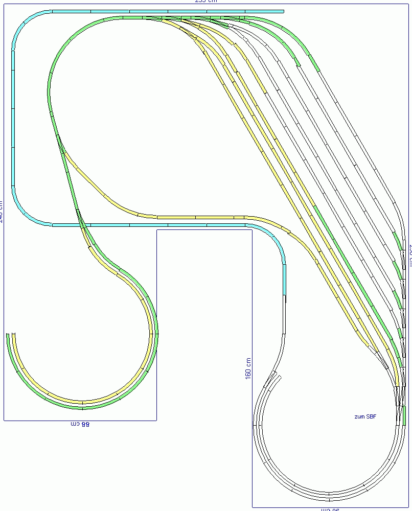 Den SB würde ich versuchen, mit identischen Gleislängen anzulegen. Genug Platz dafür hast du um das nach dem Schema hinzukriegen: