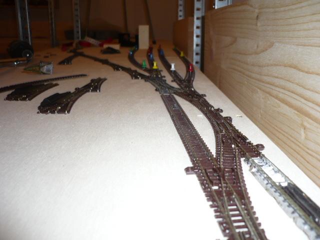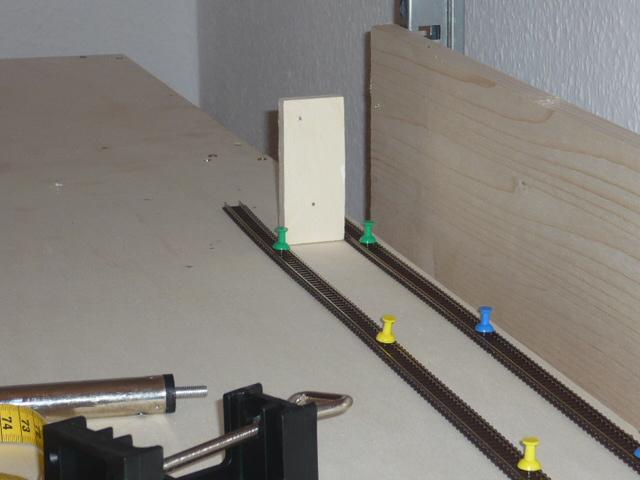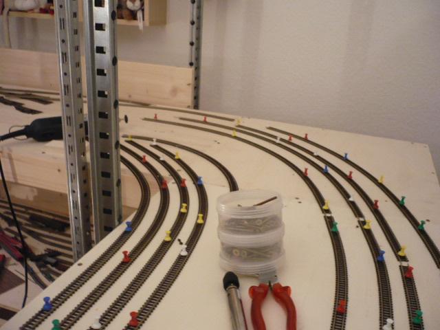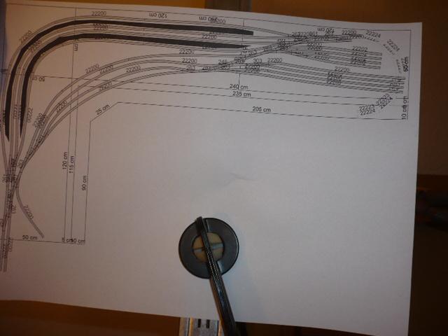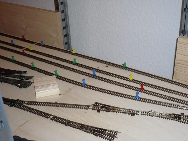 sieht schon recht imposant aus. Im Plan wirken die Bahnsteiggleise noch etwa geknickt, in der ausgelegten Version ist aber schon mehr Schwung im Gleis. Wie lang ist bei Dir ein "bissle freie wand" ?.
