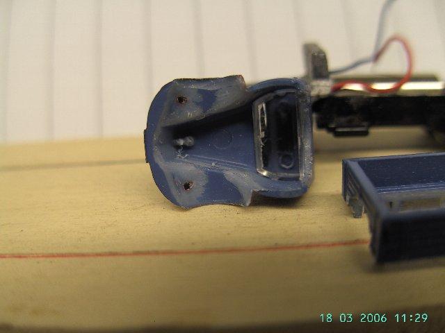 Am Vordeachshalter das meiste wegschneiden, bis man die Achse direkt unter die Motorhaube kleben kann.
